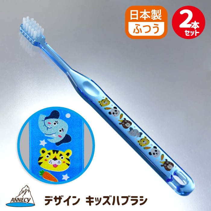 デザインキッズハブラシ【アニマルブルー】2本組×2セット【日本製】DKH-284AB JAN:4544434511450