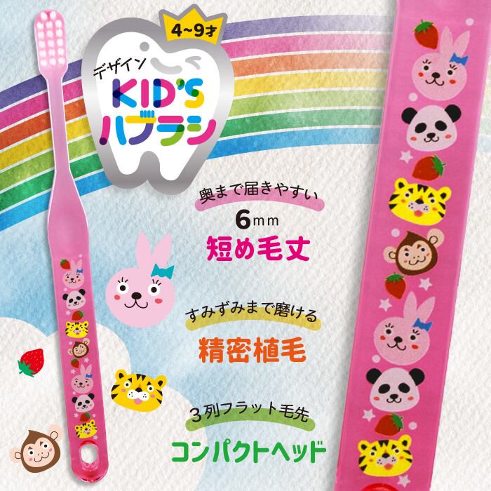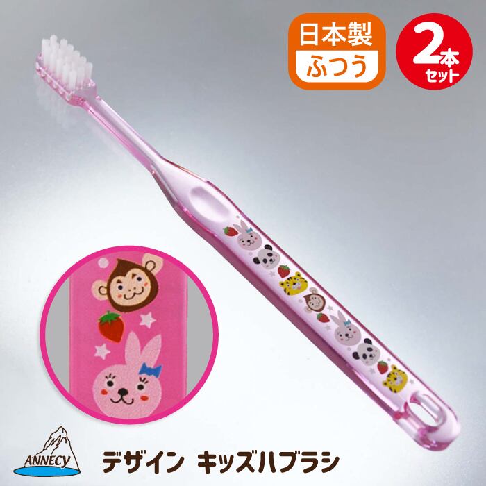 デザインキッズハブラシ【アニマルピンク】2本組×2セット 【日本製】DKH-285AP JAN:4544434511467