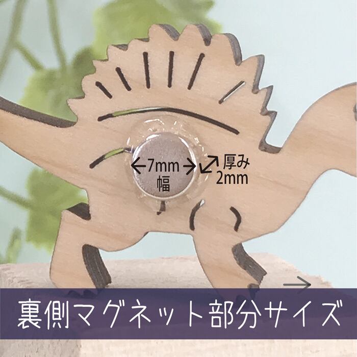 ・国産ひのきを使った、恐竜「スピノサウルス」デザインのウッドマグネット。シンプルでかわいいデザインに仕上げました。