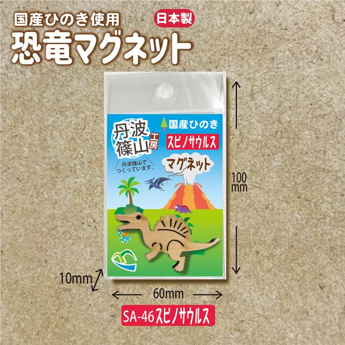 【日本製 恐竜(スピノサウルス)ウッドマグネット】国産ひのき使用・日本製 SA-46
