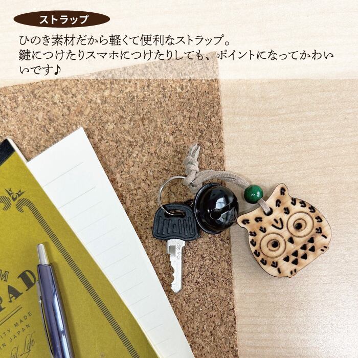 #ストラップ #根付 #天然木 #ふくろう #不苦労 #福来郎 #福老 #丹波篠山工房 丹波篠山工房ふくろうシリーズ #国産ひのき